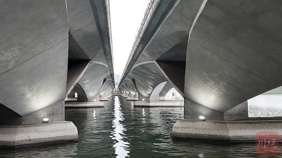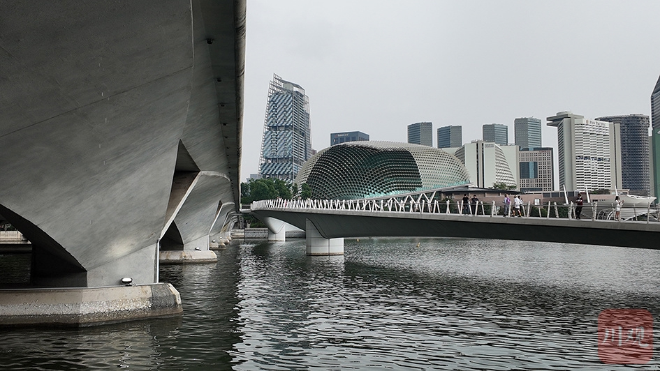 新加坡独特的螺旋桥横跨滨海湾,连接滨海中心与滨海湾金沙。