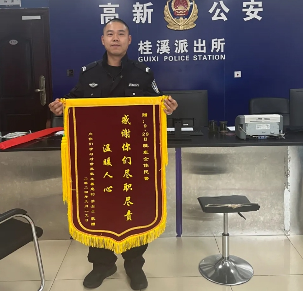 2024年5月20日,绵阳江油公安城北派出所从警10个月的新民警小严,收到从警以来的第二面锦旗,拍照时严肃脸秒变笑脸开心得合不拢嘴,“这是对我工作的最大肯定!再辛苦都值得!”小严说。