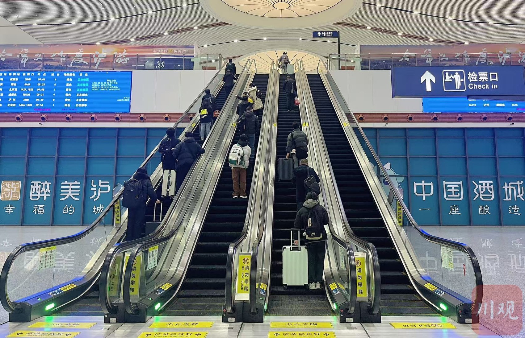 据介绍,1月14日至2月22日春运期间,泸州站预计迎送超64万旅客。“按照客流规律,高峰期将在大年二十六至二十九到来,最高日客流量预测可达6万人次。”泸州高铁站站区服务中心主任唐俊杰介绍,届时会根据客流量灵活调动车次,确保旅客出行顺利。