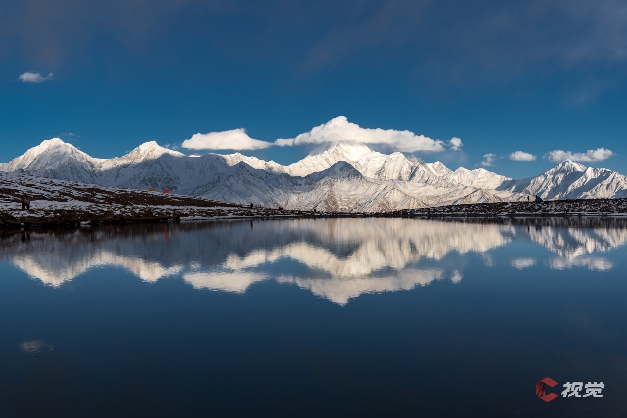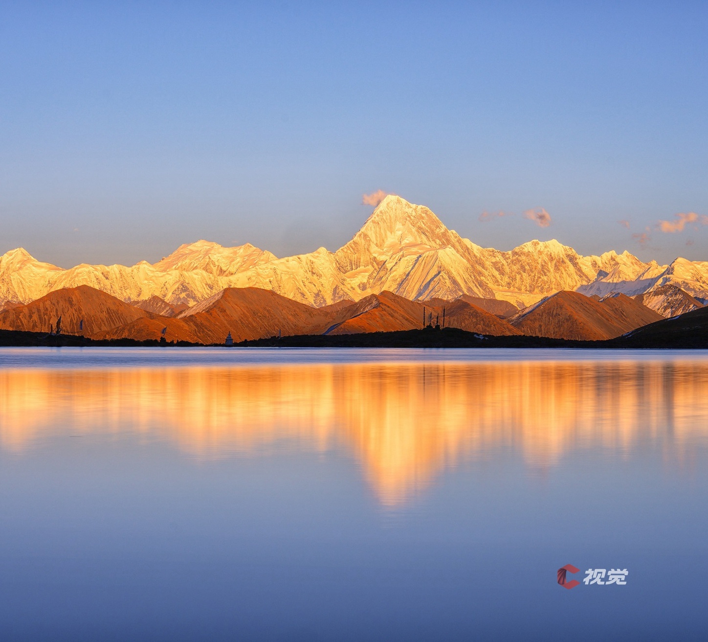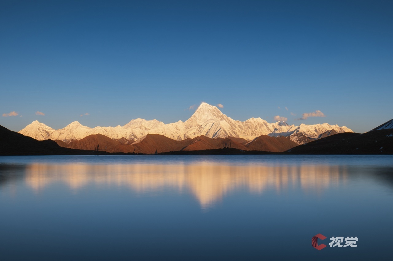 纯净明澈的冷嘎措倒映着贡嘎群峰。C视觉 王治 摄