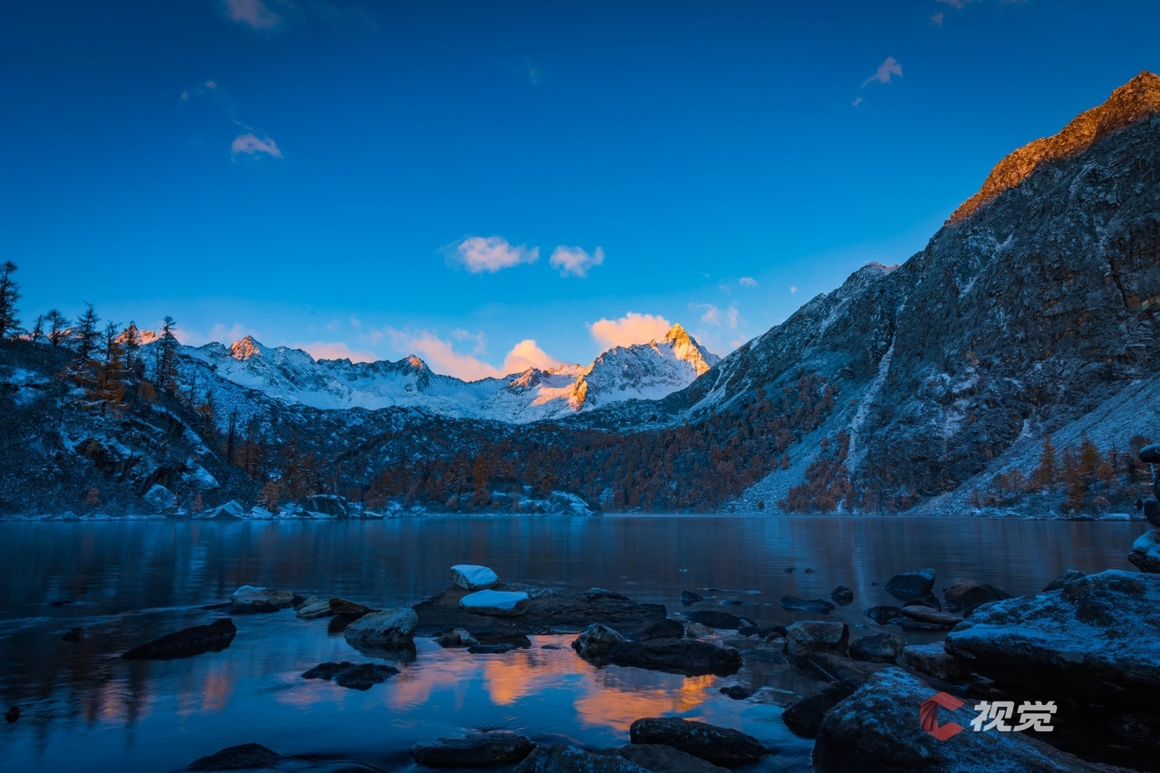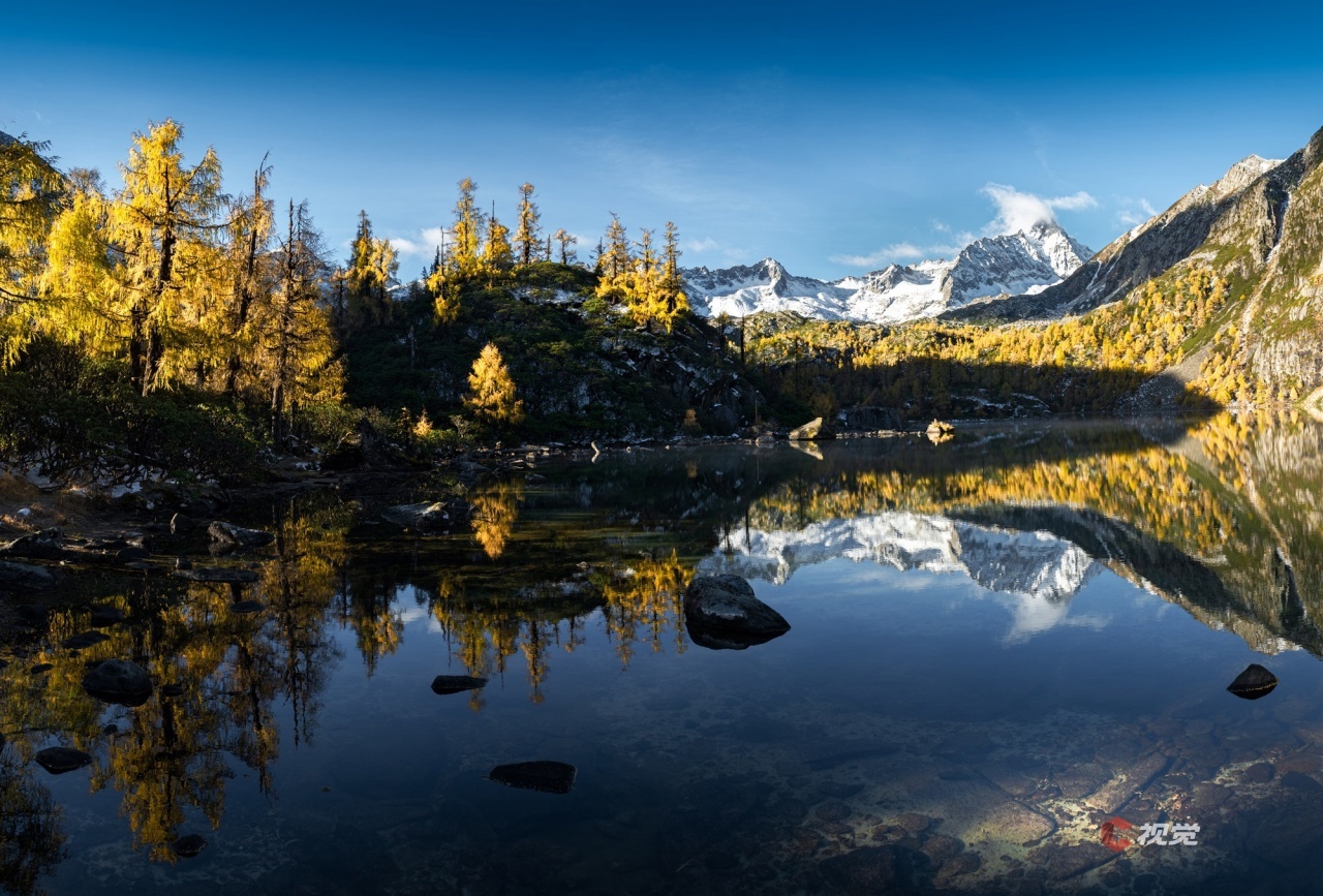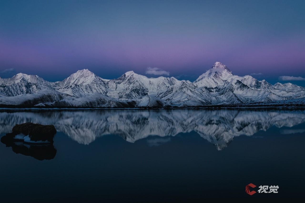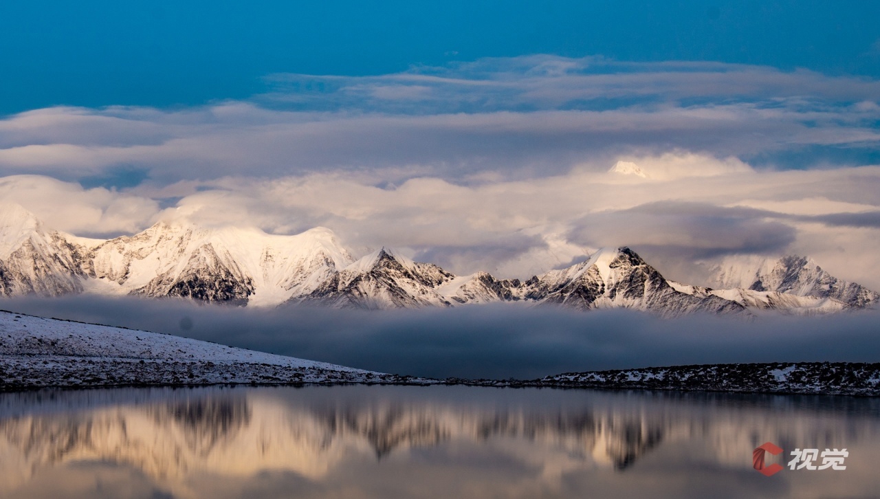 蓝色冰湖里的雪山倒影。C视觉 祝旭 摄