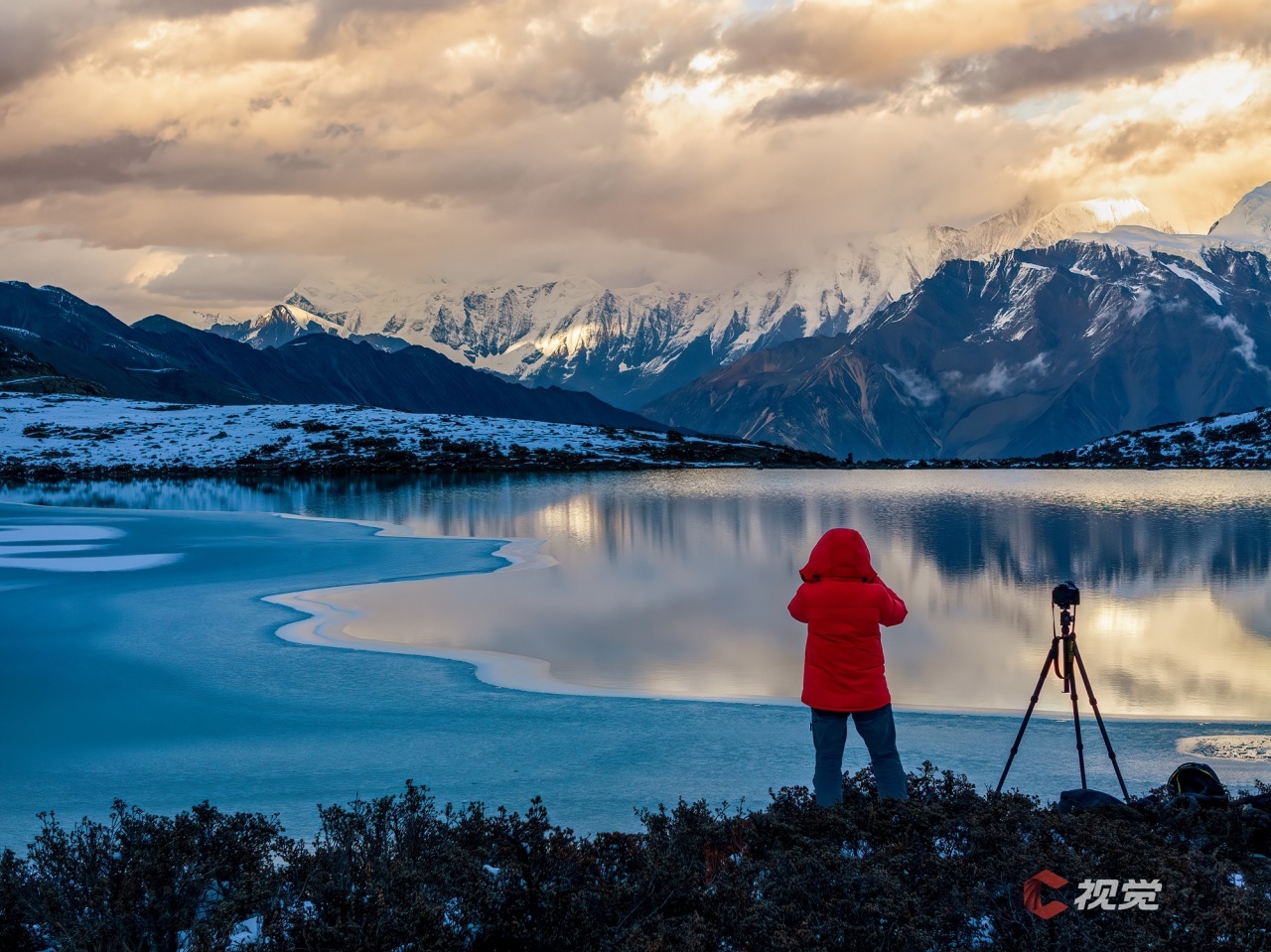 在冷嘎措看日照金山。C视觉 郭烈辉 摄