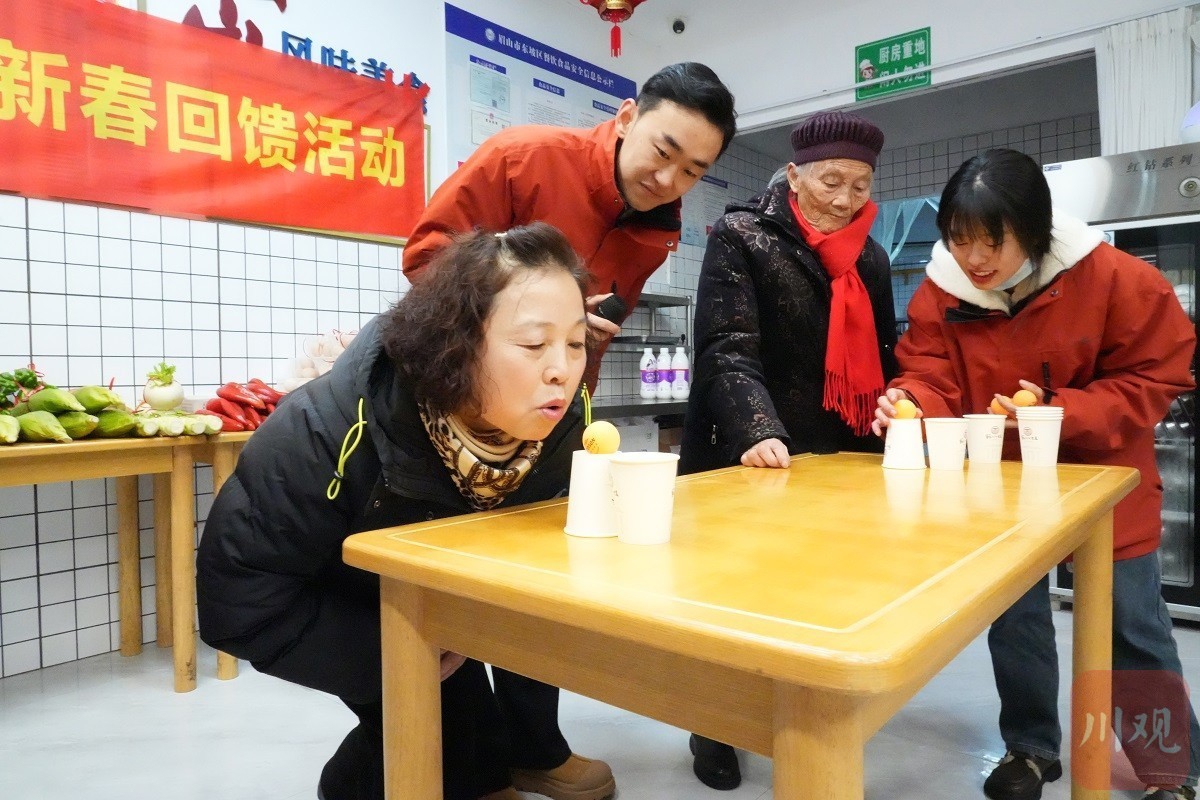 春节临近,为回馈社区老年人,营造浓厚节日氛围,金龙社区眉山苏小妹助老餐厅开展迎新春活动,30余位老年人相聚一堂免费品尝九大碗,体验果蔬套圈、夹乒乓球等趣味游戏,在欢歌笑语中迎接新年的到来。