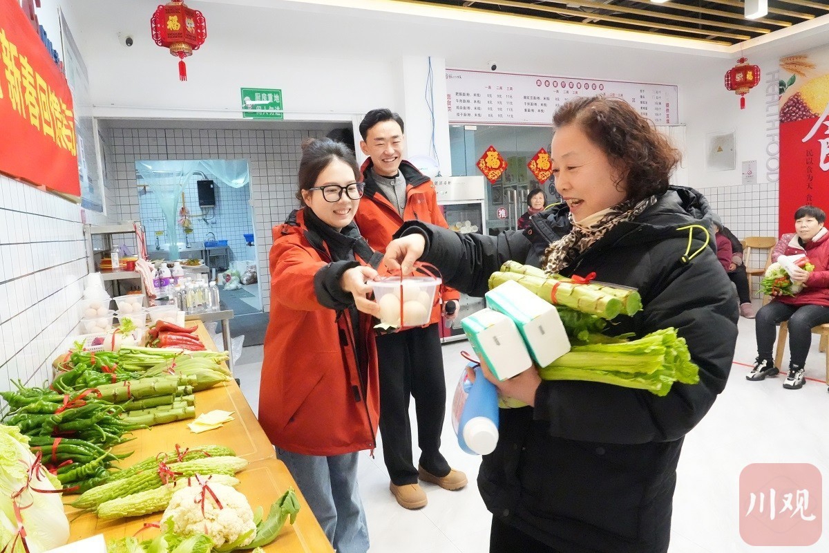 “王阿姨,您套中了难度系数最高的,这条五花肉是您的啦!”在果蔬套环游戏中,家住金龙社区的王勤华套中了心意物品,她笑容满面地说:“我常来助老餐厅,这里既好吃又好玩,大家还常聚在一起,像一个温暖的大家庭。”“对!”话音刚落,68岁的罗宿明老人凑了过来,“我家这两年的团年饭都在这儿吃,就跟在自个家一样。”