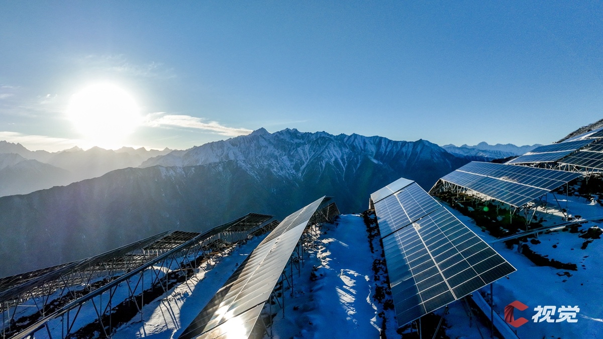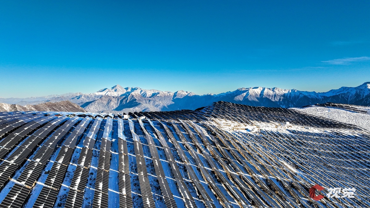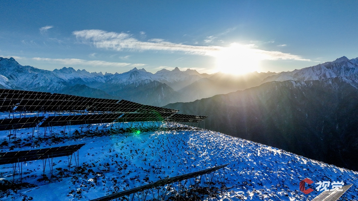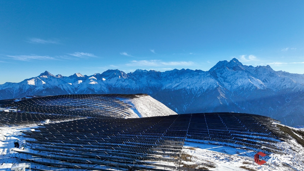 雪后的理县大马场光伏项目在冬日暖阳下熠熠生辉。