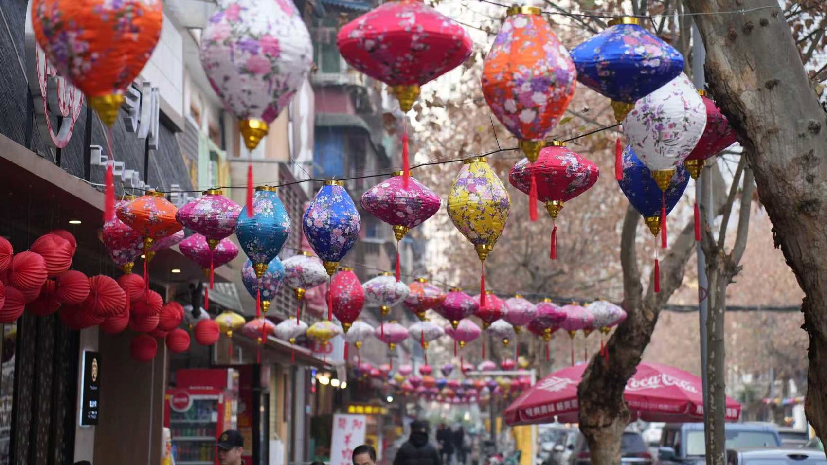 最近,路过成都锦江牛市口路的人都会眼前一亮——整条街悄悄换了装。抬头望去,红、黄、蓝等各色灯笼悬于半空,连成一道色彩斑斓的“流动彩桥”,瞬间将过年氛围感拉满。