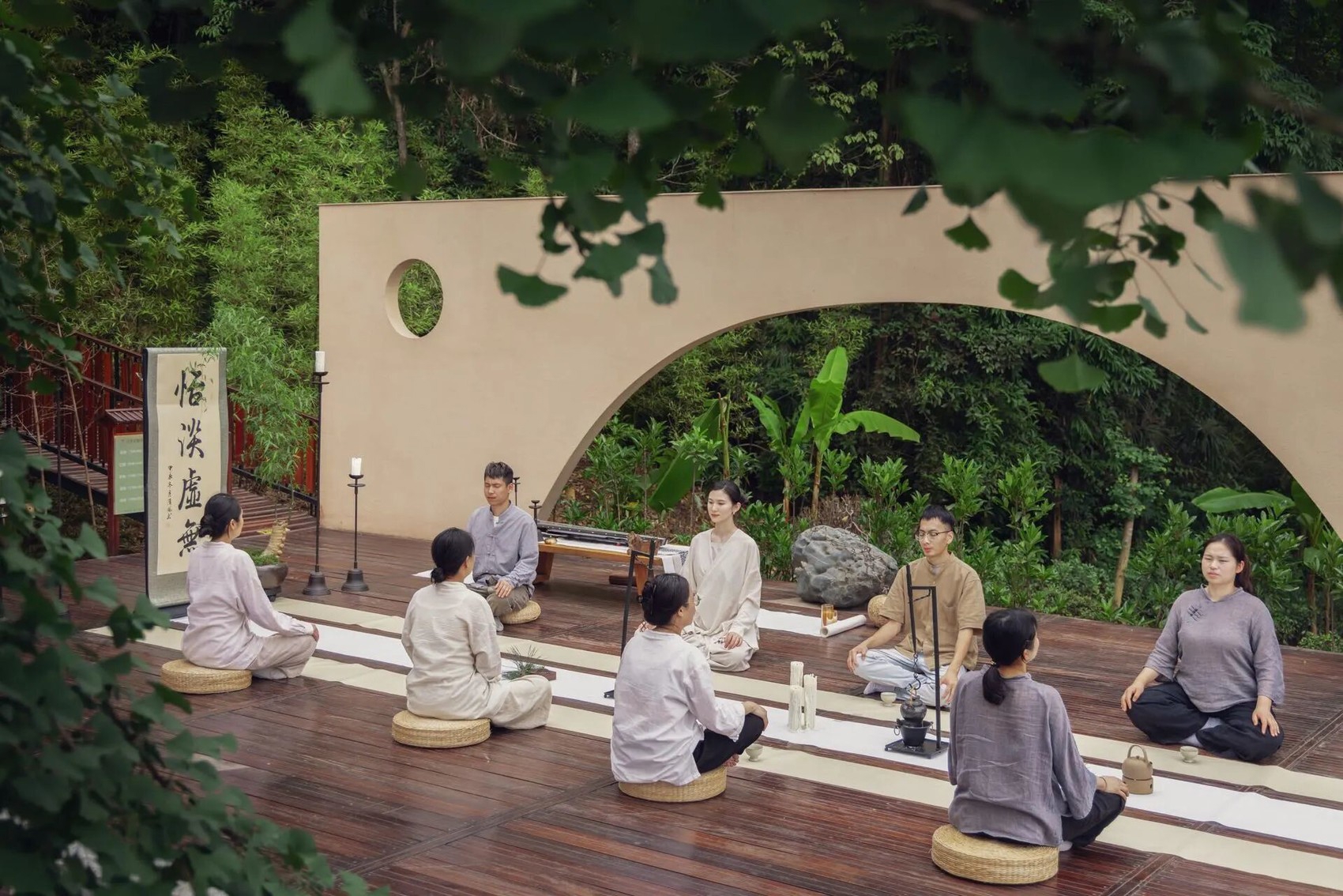 文化赋能,源于对民宿行业的整体考量。青城山周边是都江堰民宿的主要聚集区之一,“温泉已经是标配,大家都在比风景、比装修。”合谷山居合伙人徐俏说,2025年正式开业后,面对相对饱和的市场环境,经营方经过反复权衡,将“中国传统文化”和“疗愈”作为主攻的赛道。