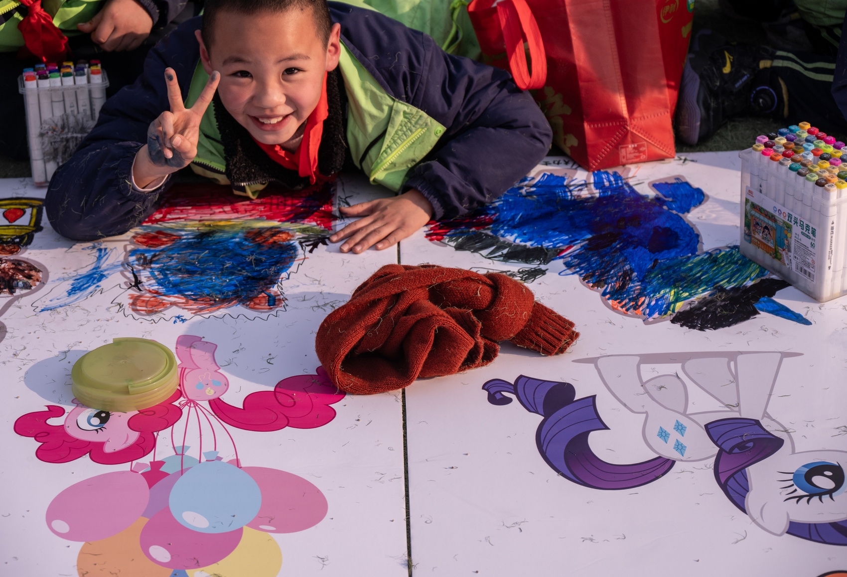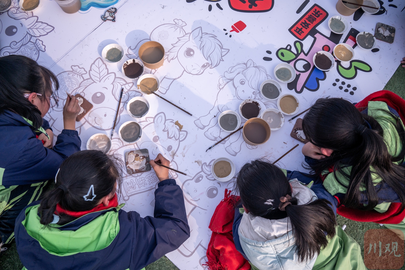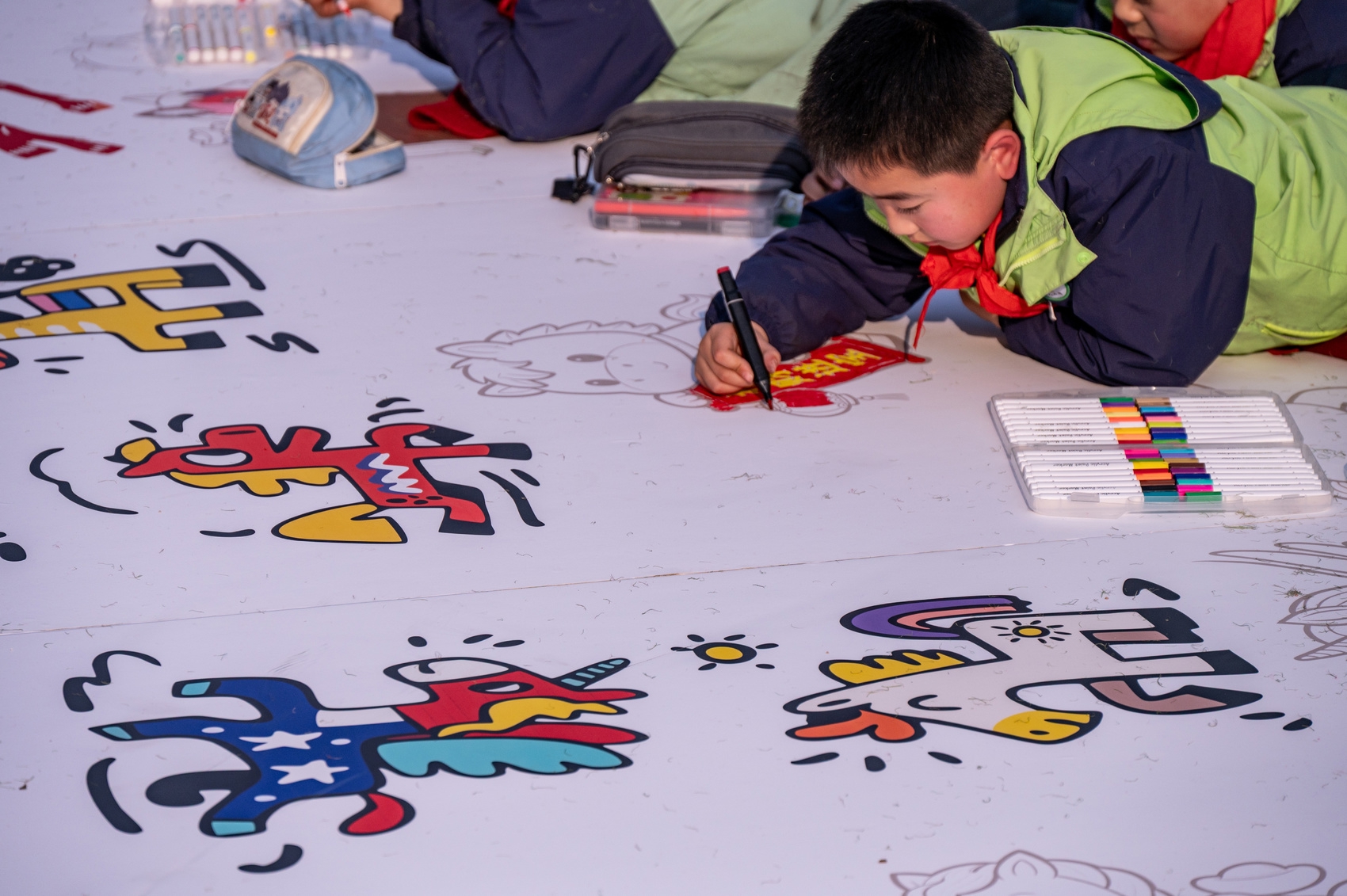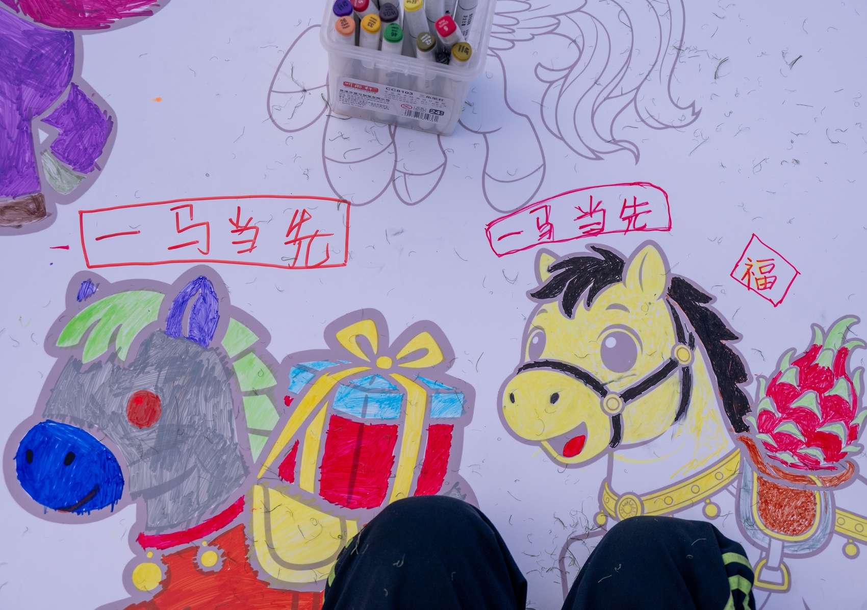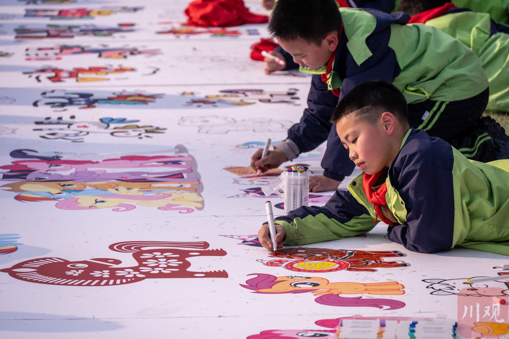 这是师生在巨大的“马”字图案上作画。