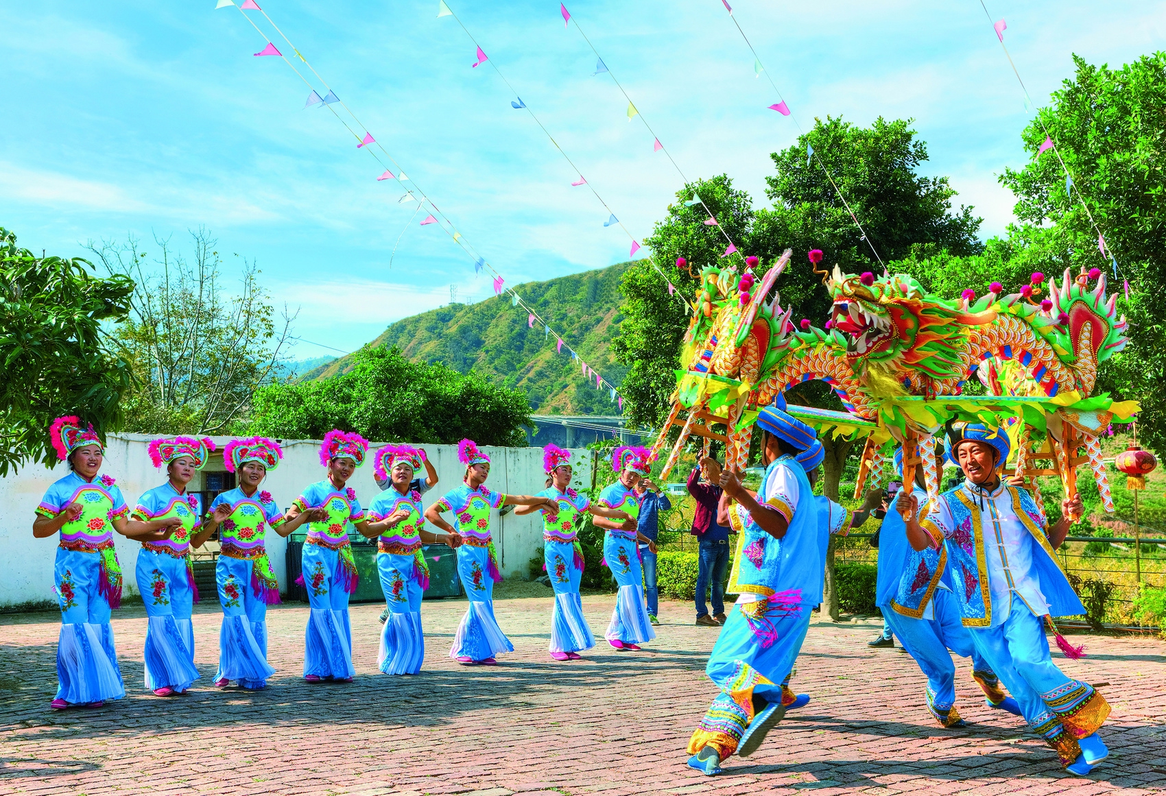 500平方米以上的场地,像一块块磁铁,把跳舞的、打球的、直播的、摆摊的统统吸引到一起。作为村民家门口的“快乐大本营”,仁和区首批16个农村文化“五个一”文化广场已建成,让乡村的民风民俗有了可以承载的场域。