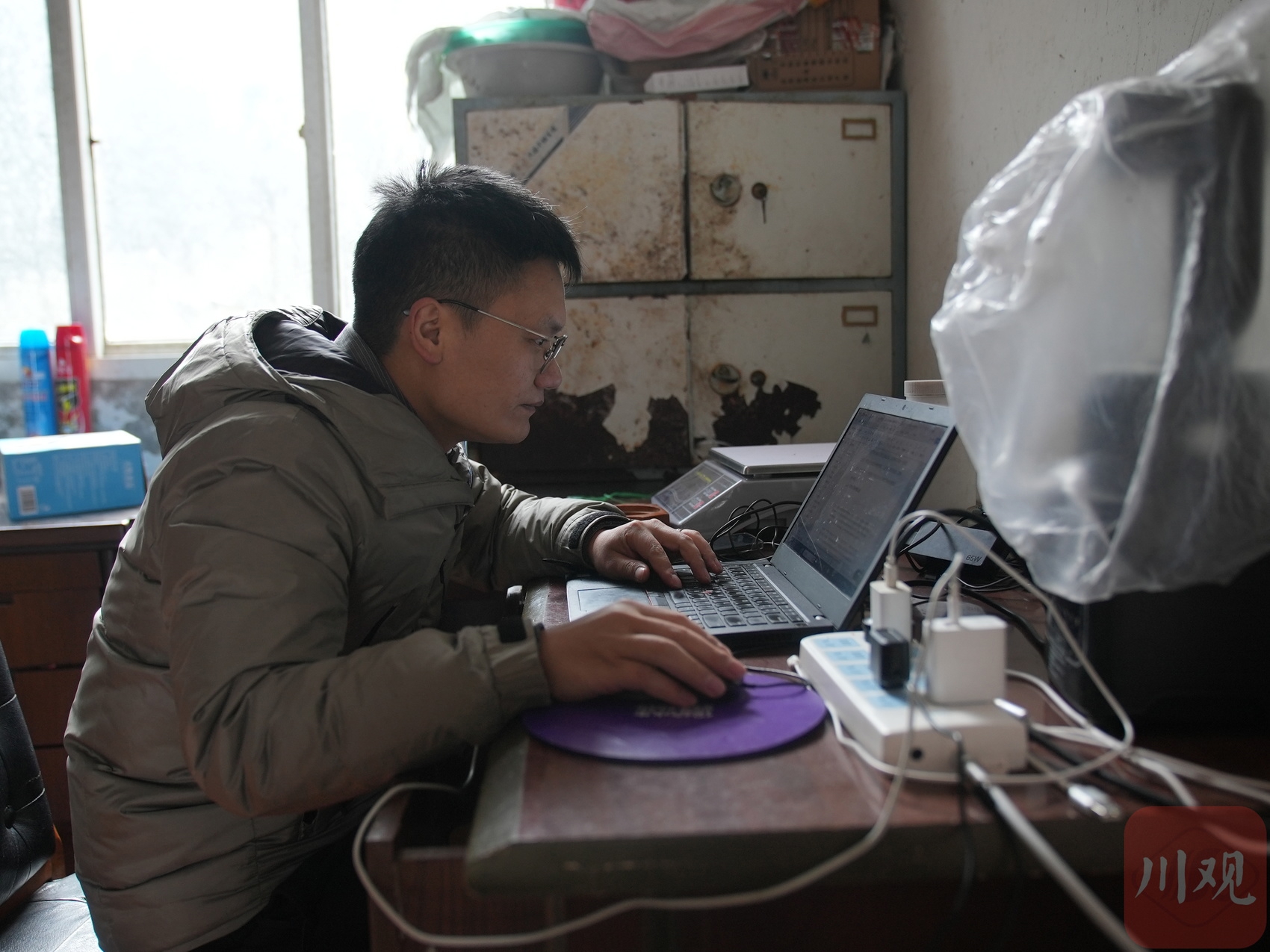 1月9日,鸡冠山冷水鱼科研基地,杨焕超在电脑前办公。