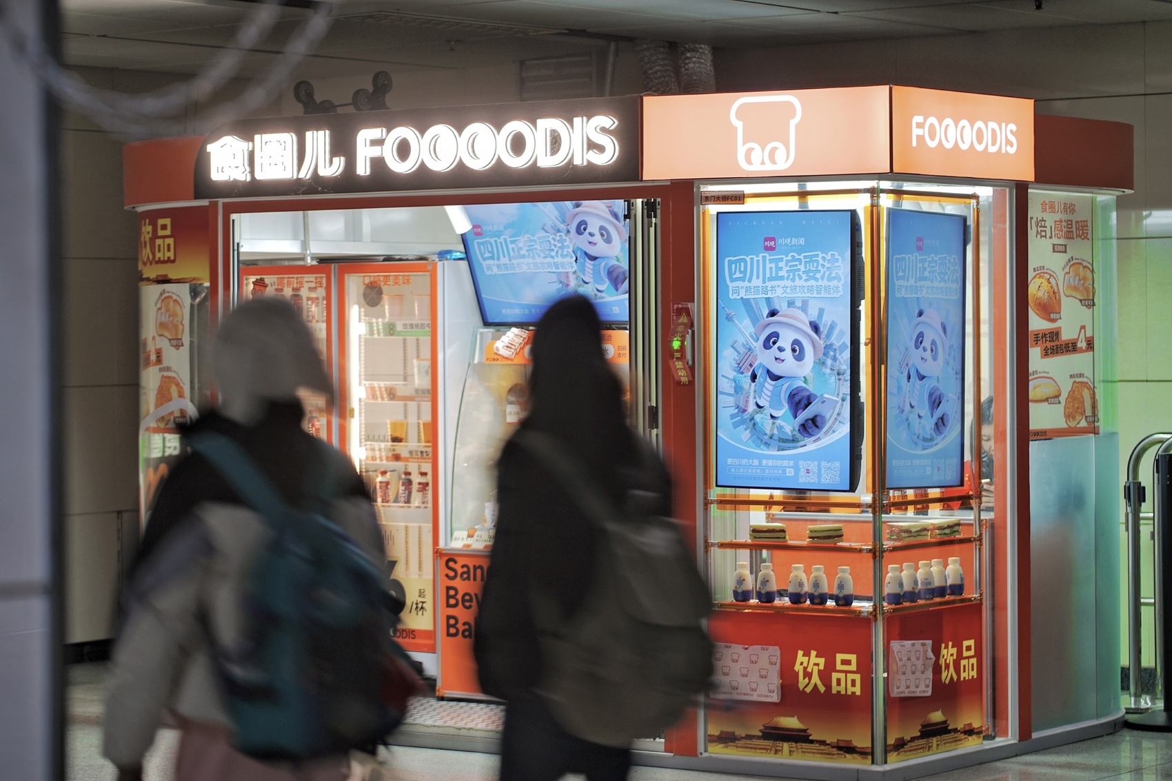 清晨通勤的地铁站,人流如织,步履匆匆。忽然间,一抹毛茸茸的身影悄悄“潜入”视线——便利店的电子屏上,一只圆头圆脑的熊猫正背着行囊、握着手机,一副“随时出发”的模样,让不少赶路的乘客不自觉放慢了脚步。