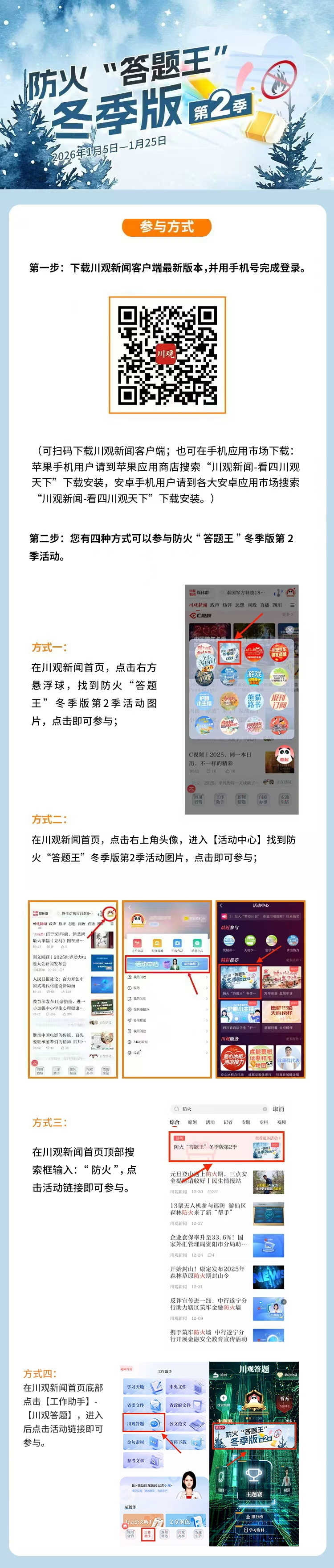 1月17日,防火“答题王”挑战赛冬季版持续进行,周末正是追分时,不要忘记答题打卡。今天的科普视频干货十足,快来刷视频、答题目。