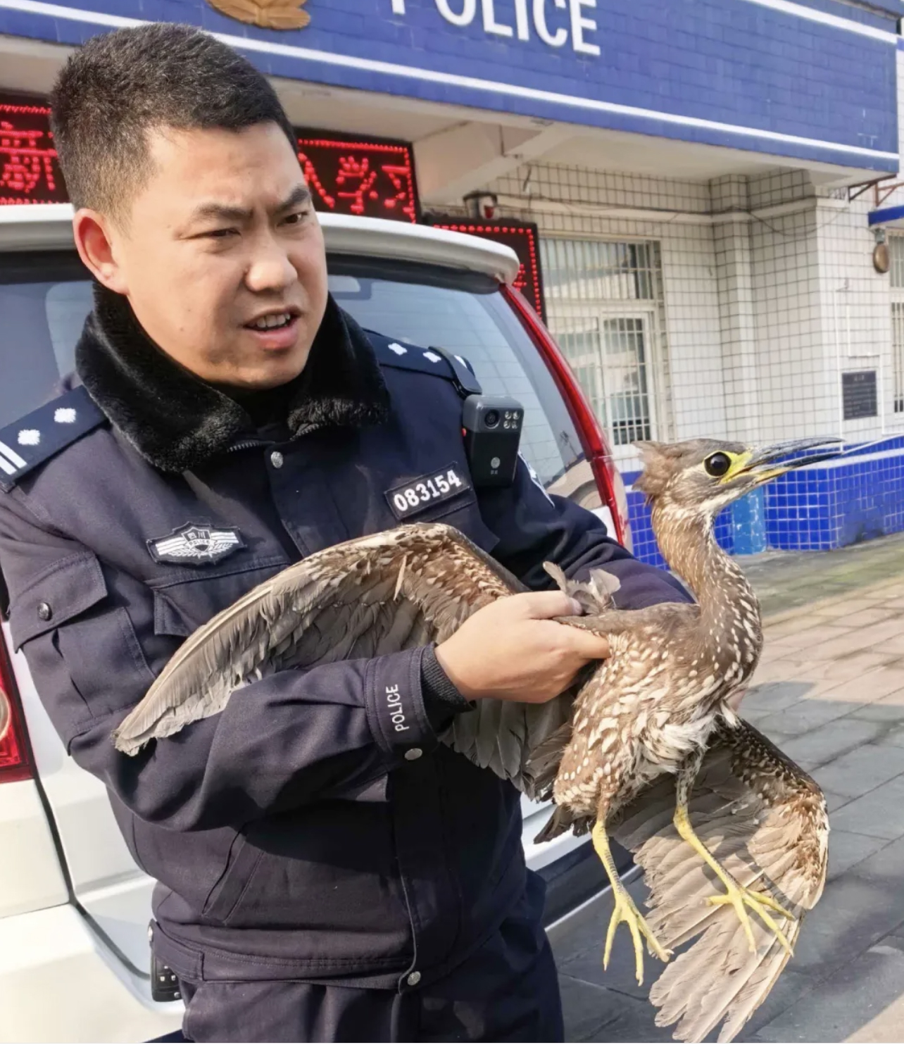 为了避免对鸟儿造成二次伤害,民警化身“临时救护员”,用柔软毛巾轻轻将其包裹,搭建起一个安全的“移动担架”,随后迅速将鸟儿转移至温暖通风的警车内,开启了一场与时间赛跑的救援。在派出所进行初步照料后,民警第一时间联系新场镇政府林业部门,实现了“警政接力”,为这只小鸟争取了宝贵的救治时机。