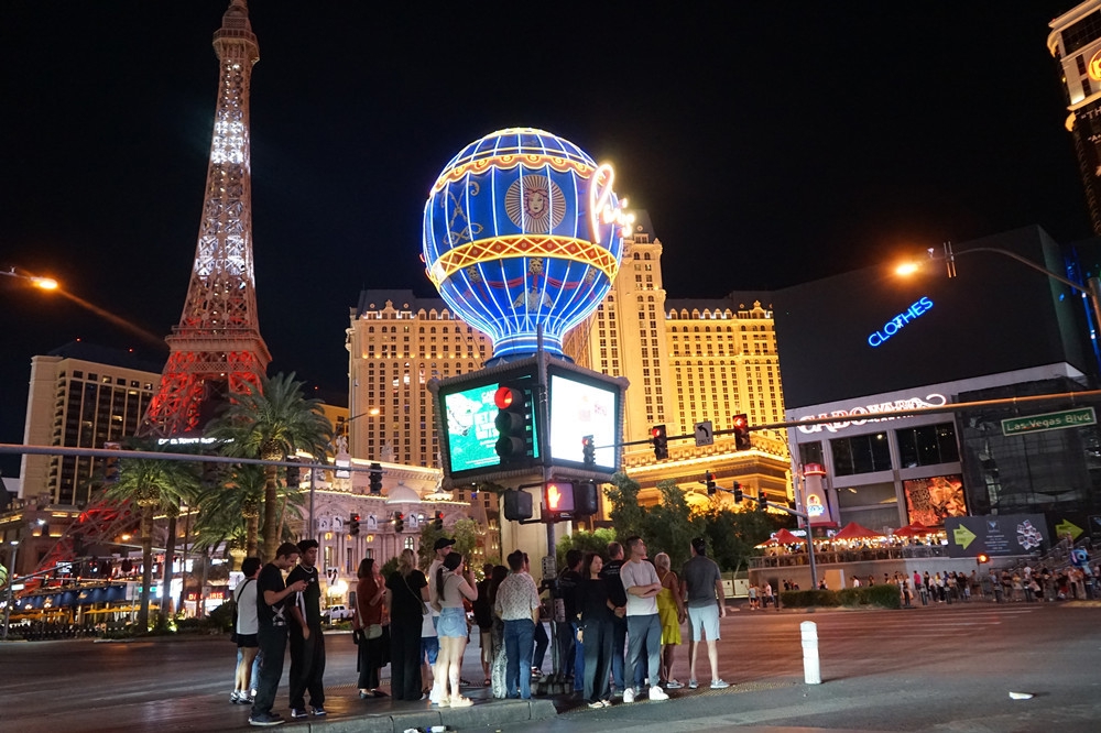 2025年9月9日,在美国拉斯维加斯,游客在拉斯维加斯大道上。图据新华社