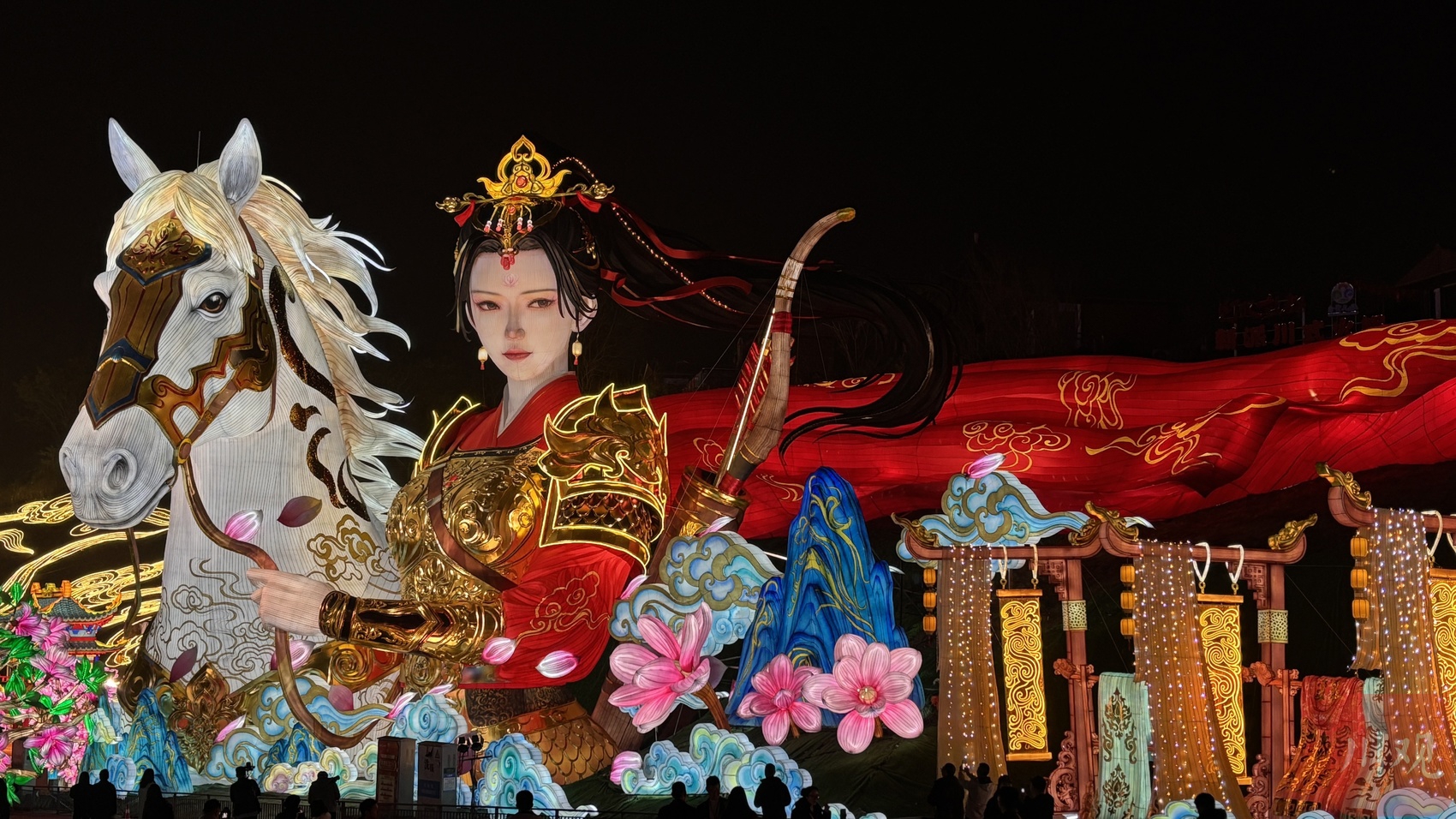 “木兰传奇”灯组长达180米,将木兰英姿与骏马奔腾巧妙融合。丛雨萌 摄