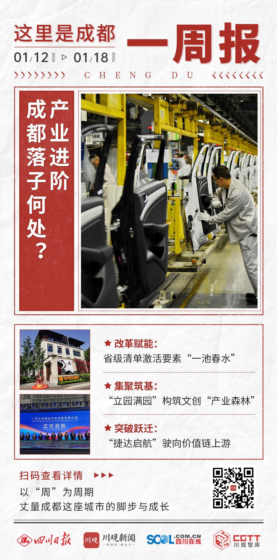 一场为要素市场化改革绘制蓝图的省政府新闻发布会,为城市发展注入了深层次的制度活力;一次市委主要领导对数字文创产业的专题调研,强调了通过“立园满园”夯实产业载体的路径;而一次推动捷达品牌成为“成都造”的关键合作,则标志着本地汽车产业向价值链上游迈出实质性一步。