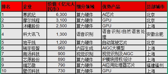 榜单显示,排名前十的企业分别是:寒武纪、摩尔线程、沐曦股份、科大讯飞、地平线、稀宇极智、商汤科技、芯原股份、瑞芯微、壁仞科技。