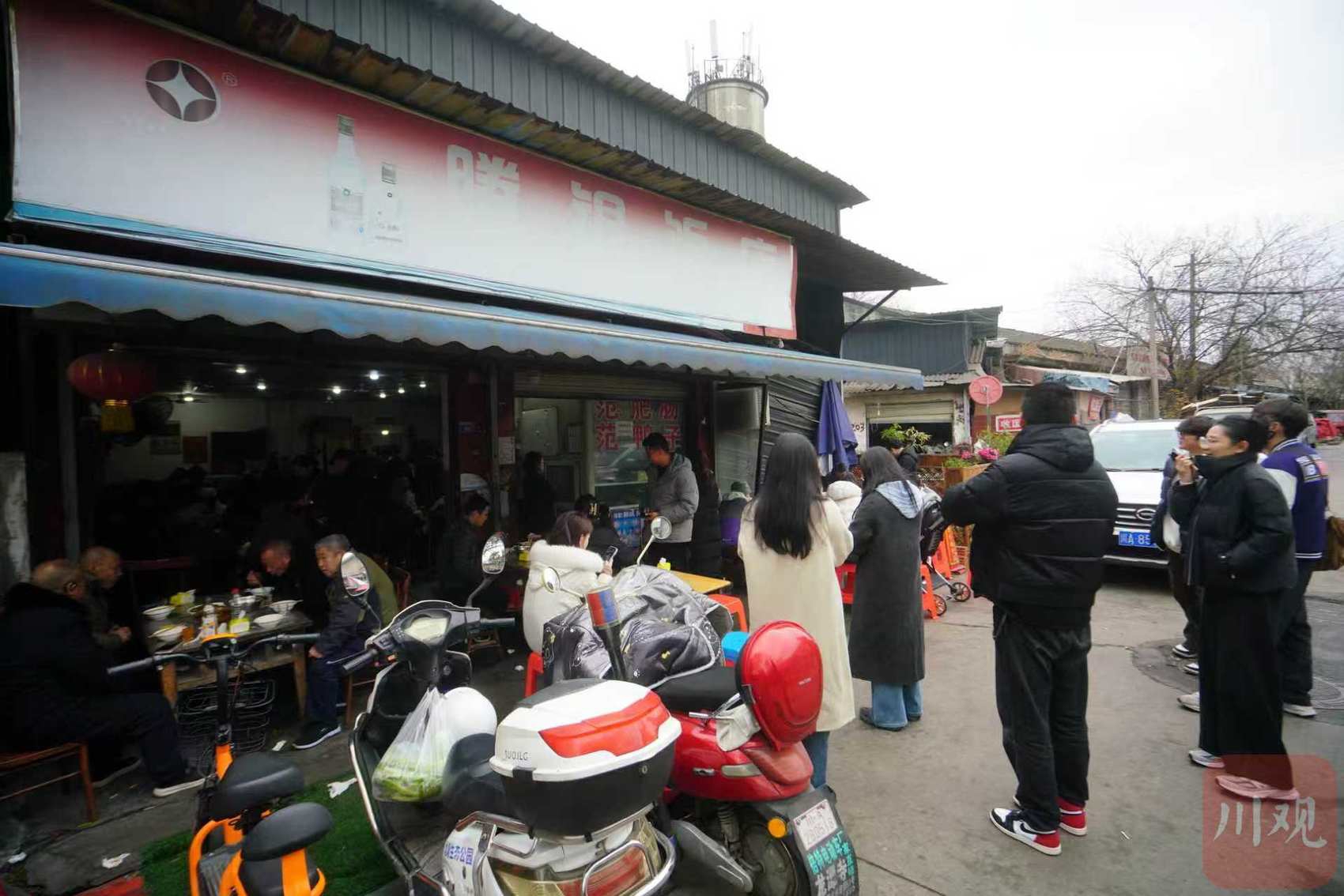 近日,一名食客用最地道的老成都口音推荐一家街头小店的视频走红网络,也带火了这家开了30年的老饭店。19日中午,川观新闻记者实地探店,这家面积200平米的饭店早已座无虚席:堂内13桌、门口9桌、后院5桌全部坐满,店外的队伍仍在延伸,午餐时段的排队要一直持续到下午3点。