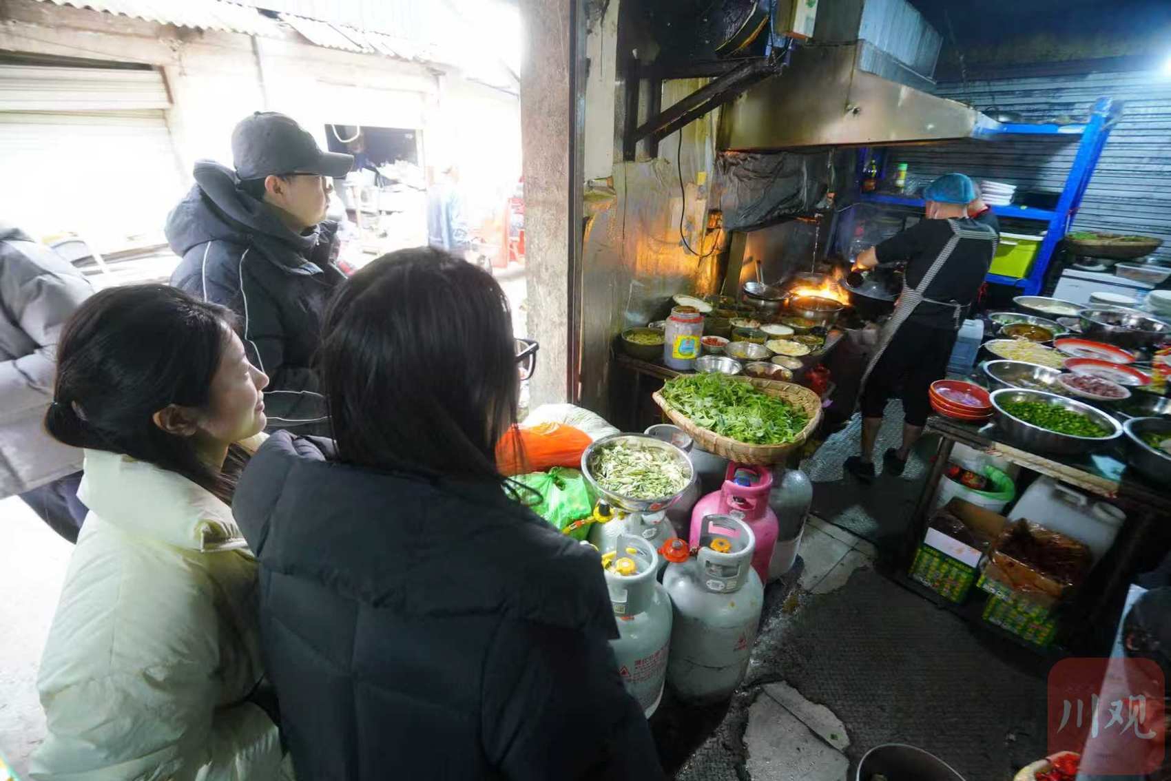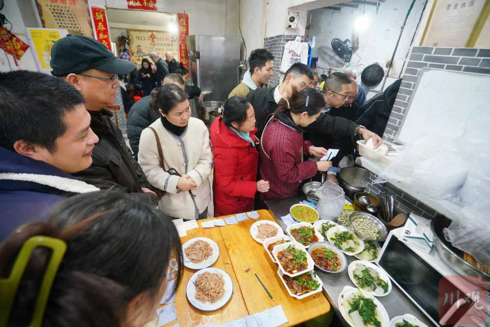 从红星路赶来的蒋先生和朋友12点就开始排队,等了一个小时才吃上。他说道:“最早是在网上刷到老成都口音的段子来的,排了队还是值得,味道确实巴适!”正是这波网络热度,让这家藏在街巷里的老饭店成了打卡热门。