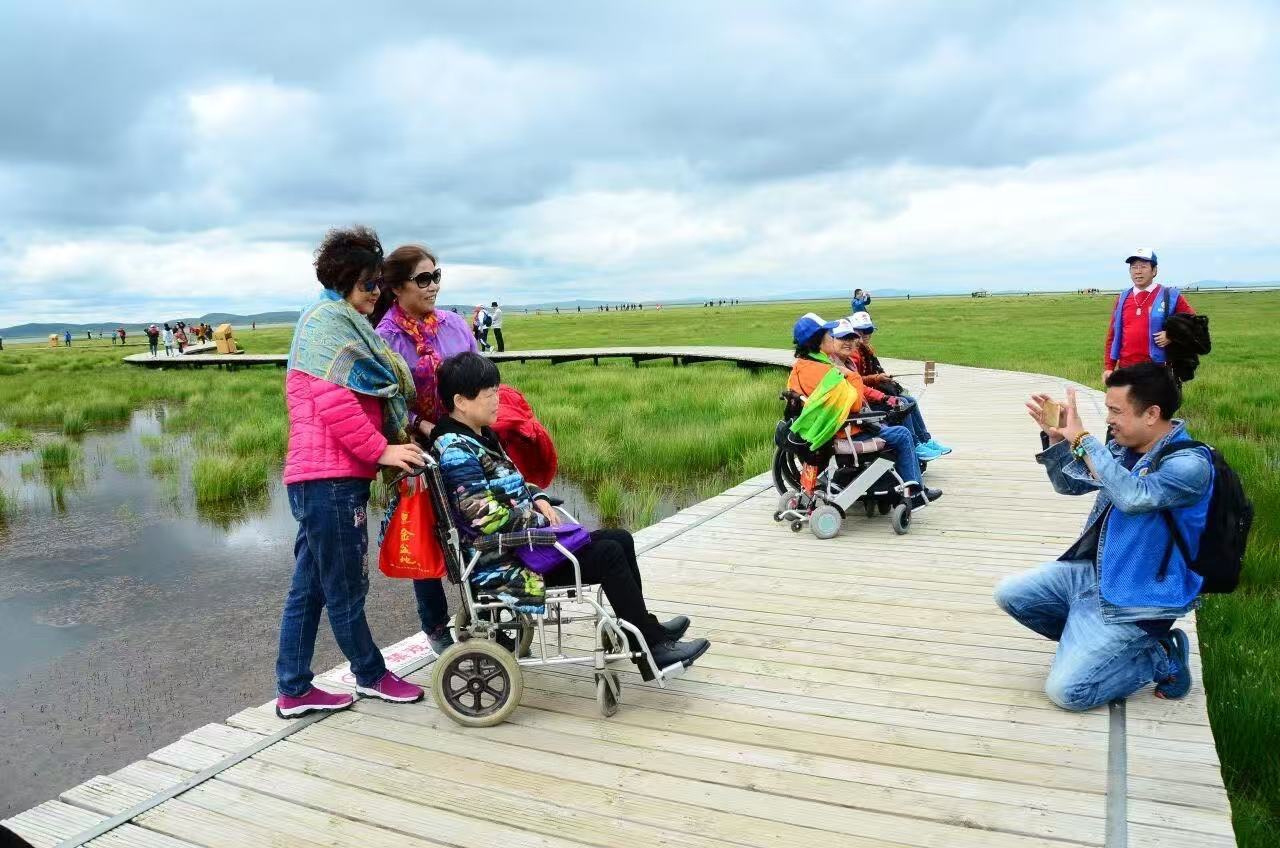 残疾人游客跟随无障碍旅行团外出旅游。